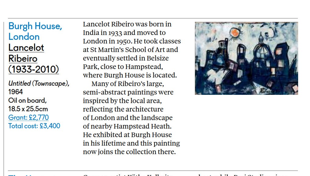 The Retracing Ribeiro project is held in London. It includes an exhibition at Hampstead’s Burgh House Museum, and events such as ‘Remembering Lancelot Ribeiro and other Indian artists in 1960s Britain’ at the British Museum and the Victoria & Albert Museum’s ‘Ribeiro: A Celebration of Life, Love and Passion’.