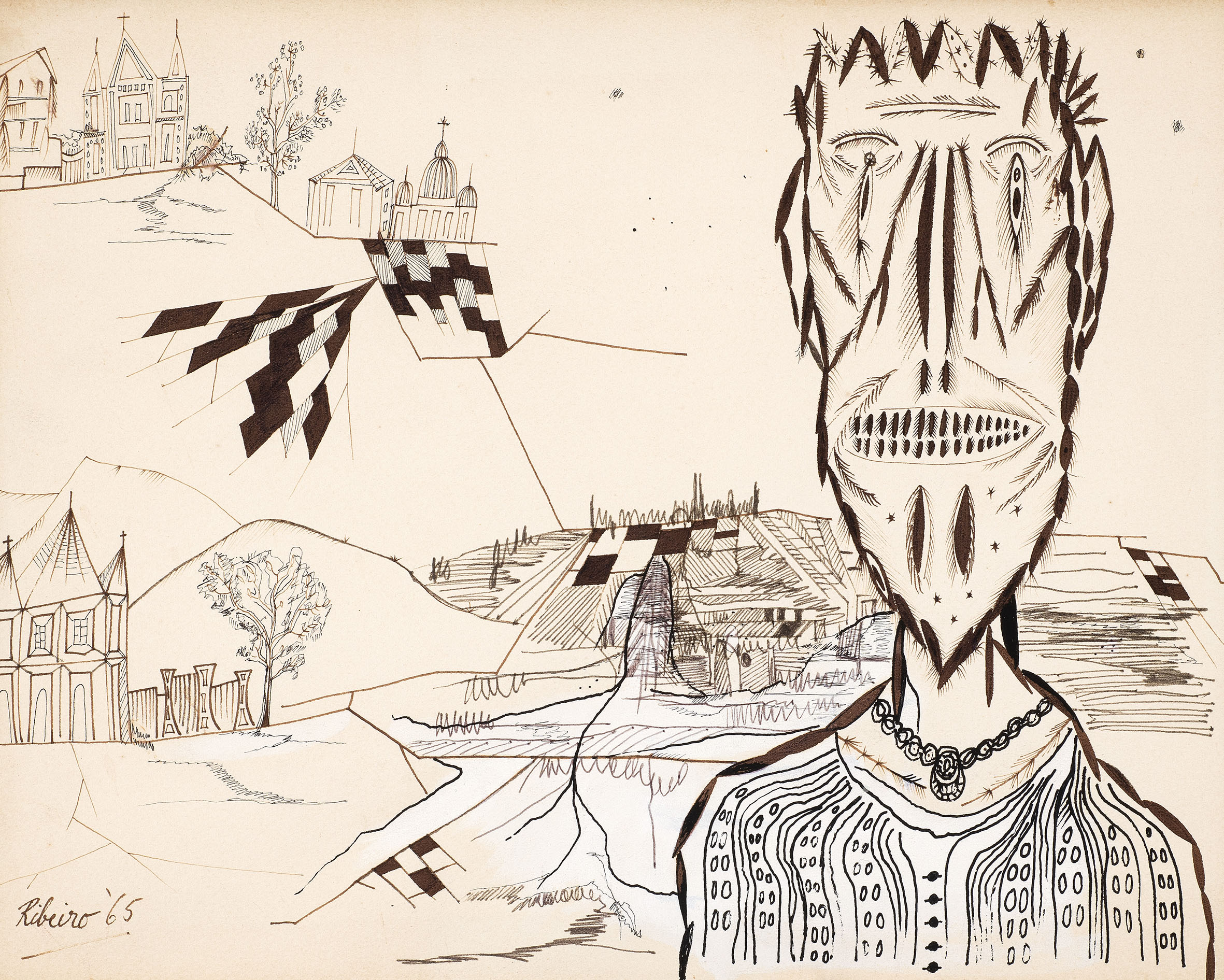 Ink and colour wash on paper