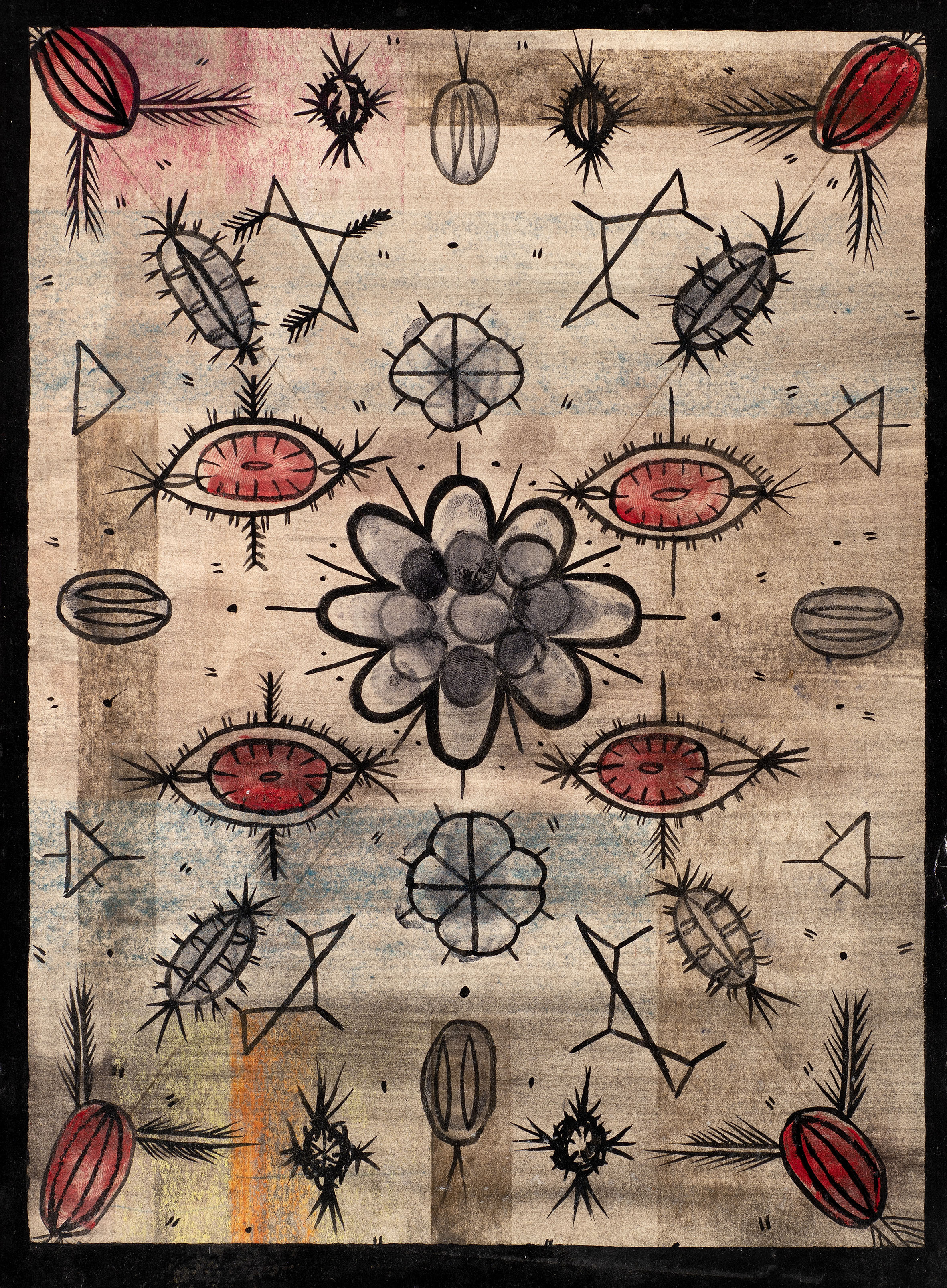 Oil, crayon and Polyvinyl Acetate on paper