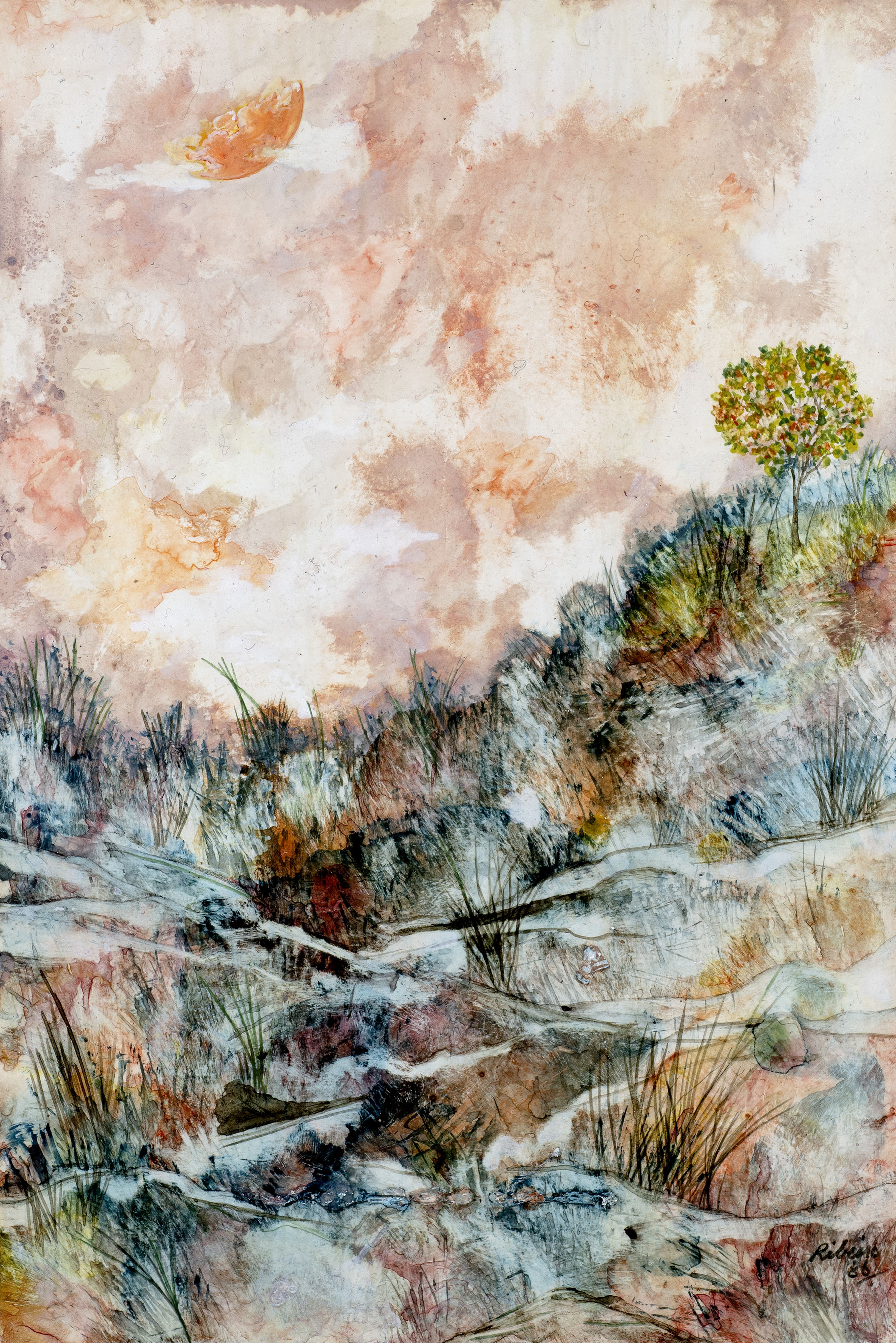 Watercolour and varnish on laminated card